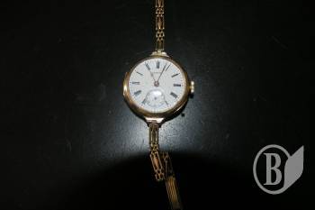 - старовинний, 585 проби, механічний жіночий годинник всесвітньо відомої французької фабрики «Лонджін» 1900 року випуску діаметром 30 мм, з двома кришками, з зображенням 12 нагород;
