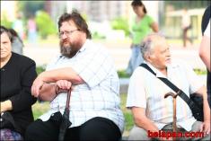 Він і ще декілька чоловік його віку спокійно сиділи на лавочці біля Національної бібліотеки, де проходила акція мовчазного протесту. Пізніше Володимир - так звуть потерпілого - розповів нам, що просто гуляв в тому місці. Проте міліція зажадала, щоб він пішов з майданчика перед бібліотекою. Невідомі в штатському за руки стягнули його з лавки на асфальт і збиралися затягти в міліцейську машину.