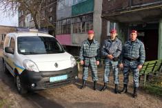За вказаною адресою прибули бійці спецпідрозділу «Беркут». Вони побачили понівечені металеві двері, в яких було видно наскрізний кульовий отвір, а через закриті двері вдалося поспілкуватися з переляканою жінкою, мешканкою квартири.