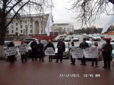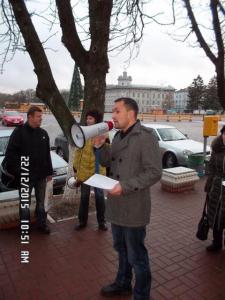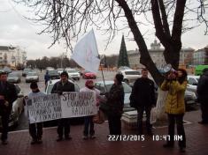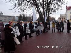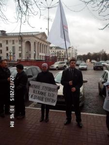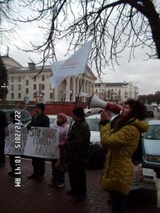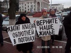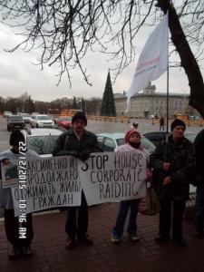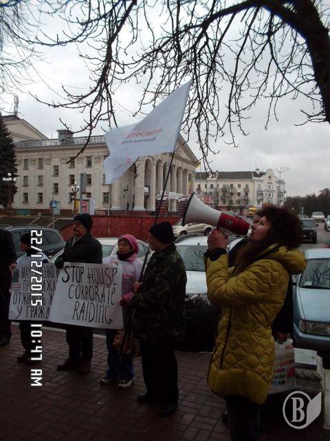 Перед участниками пикета выступила Татьяна Ереско, которая рассказала о 8-летней волоките в судах и назвала преступных субъектов этого дела: риэлтора-махинатора и список стражей порядка, судей и нотариусов.