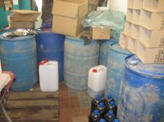 У присутності понятих усі ємності (200-літрові діжки, пластикові каністри та м'яка упаковка зі спиртовмісною сумішшю) були описані та вилучені. Загальна кількість вилученої рідини становить 2 тонни.