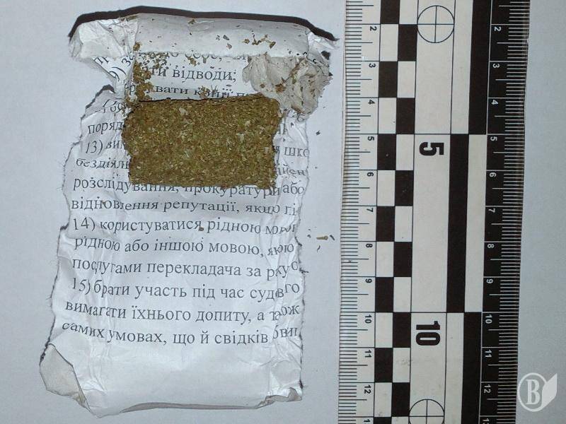 Также в следственном изоляторе Чернигова во время обыска осужденного, который прибыл из ИВС, изъяты два бумажных свертка с веществом зеленого цвета растительного происхождения.