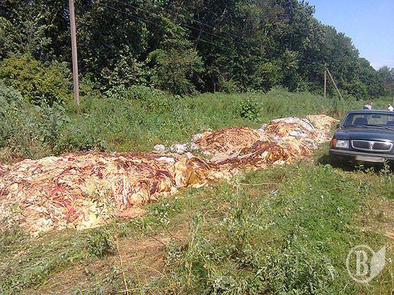 Представники місцевого підприємства, якому належать відходи, пояснили, що водій вантажівки повинен був вивезти відходи на утилізацію до іншої області, натомість недобросовісний чоловік скидав їх прямо на поле.