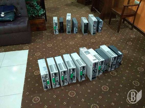 В приміщенні лотомаркету на вулиці Шевченка в ході обшуку виявлено та вилучено 21 комп’ютер, відеореєстратор та відеокамера до нього, роутер, 10 тисяч гривень та документацію.