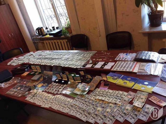У кабінеті правоохоронця, який має спеціальне звання полковник поліції, виявлено та вилучено 21,5 тис. доларів США, 150 євро, золоті зливки, ювелірні вироби та колекцію монет.