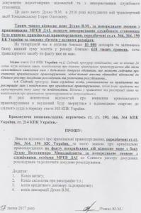 Так, Рожко Ю. М. дізнався, що його транспортний засіб Toyota Camry був невідомим йому способом, без його згоди, з втикористанянм службового становища Духно, переоформлено на його сестру Журило. Таке переоформлення автомобіля відбулося за попередньою змовою з працівником МРЕВ ДАІ шляхом внесення до офіційних документів недостовірних відомостей та з використанням службового становища.