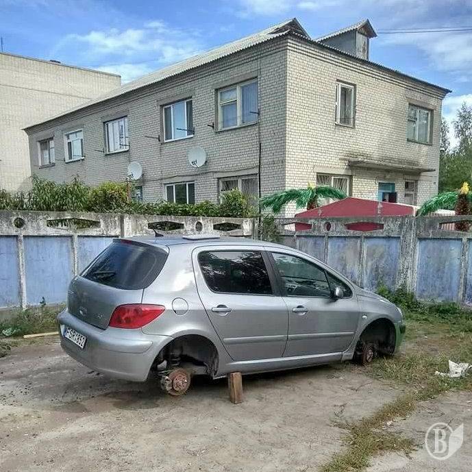 Стоїть він міцно, надійно. В тому сенсі, що нікуди не поїде. Бо колеса з нього вже тю-тю…