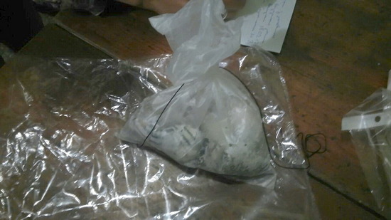 На знімках не показують, як проводився обшук. Тільки за фактом - наручники і предмет в целофані, щоб не промок. Дощ ще на вулиці сьогодні