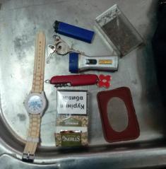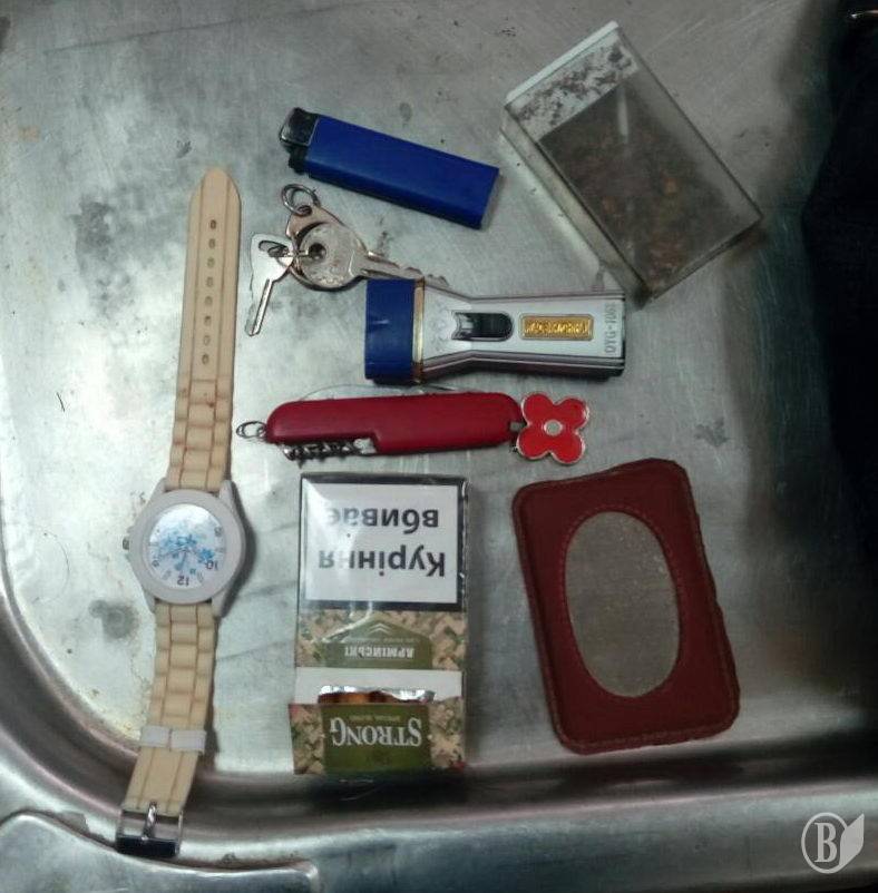 ПРИ СОБІ МАВ: велосипед фіолетового кольору, чоловічий, хрестик з білого металу на мотузці, 2 зв’язки ключів, брелок у вигляді ромашки, сигарети «STRONG» армійські, запальничка синього кольору, розкладний ніж червоного кольору, дзеркальце в коричневому чохлі, ліхтарик пластмасовий, сірого кольору з синім, часи наручні пластмасові, білого кольору з жовтим ремінцем.