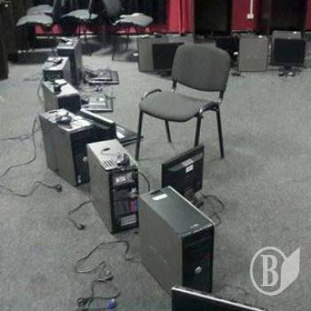 Поліцейські, в присутності понятих, вилучили дев’ять комп’ютерів, комп’ютерні оптичні маніпулятори та карти флеш-пам’яті.