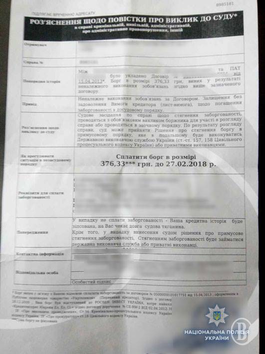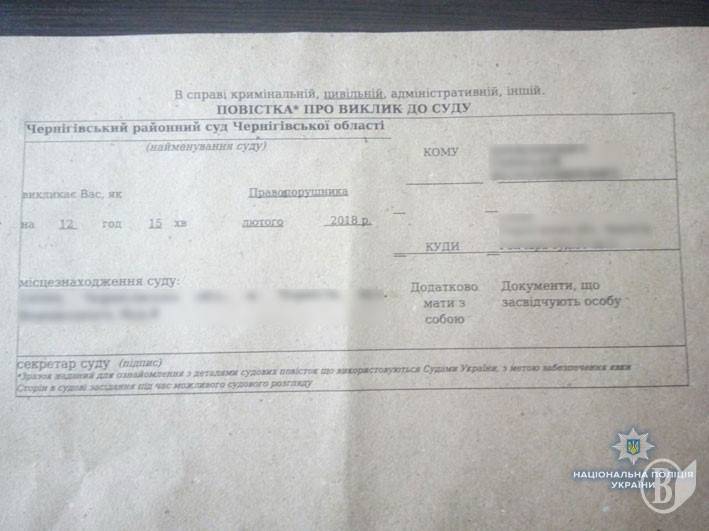 В «документі» зазначається, що господаря викликають на вказаний час і день до суду як правопорушника, до повістки навіть додається «роз’яснення щодо повістки про виклик до суду».