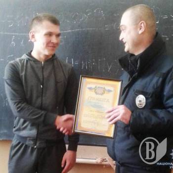 Начальник сектору реагування патрульної поліції Прилуцького відділу поліції ГУНП в Чернігівській області Олег Малиш завітав до Прилуцької загальноосвітньої школи №7, щоб вручити почесну грамоту десятикласнику Дмитру Отрошу. Таку честь підліток заслужив за проявлену сміливість і громадянську позицію, яка допомогла поліції розкрити злочин.