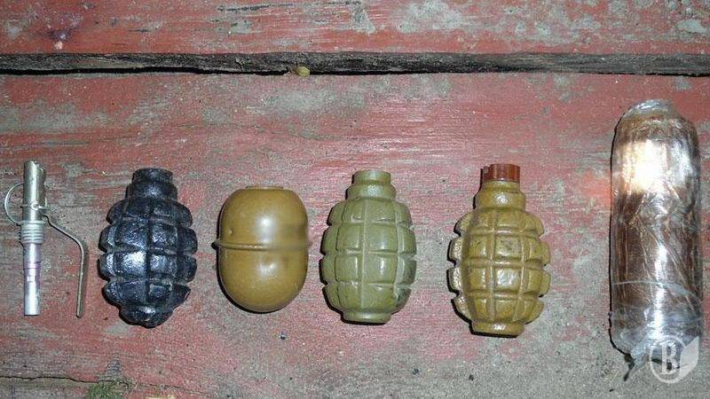 В ході огляду схову поліцейські виявили та вилучили 3 ручні осколкові гранати Ф-1 та одну гранату РГД-5, запал до гранати, 120 набоїв різних калібрів до нарізної зброї армійських зразків, а також саморобний вибуховий пристрій, який вибухотехніки знешкодили.