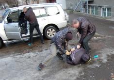 Співробітники СБУ затримали одного з учасників угруповання згідно зі ст. 208 Кримінального процесуального кодексу України при спробі збуту чергової партії психотропів. Під час затримання зловмисник намагався чинити збройний опір.