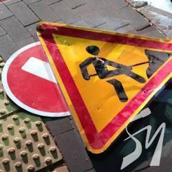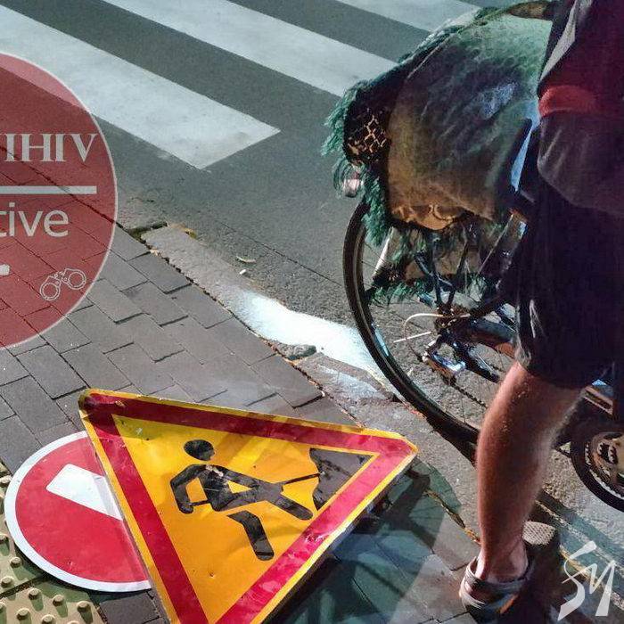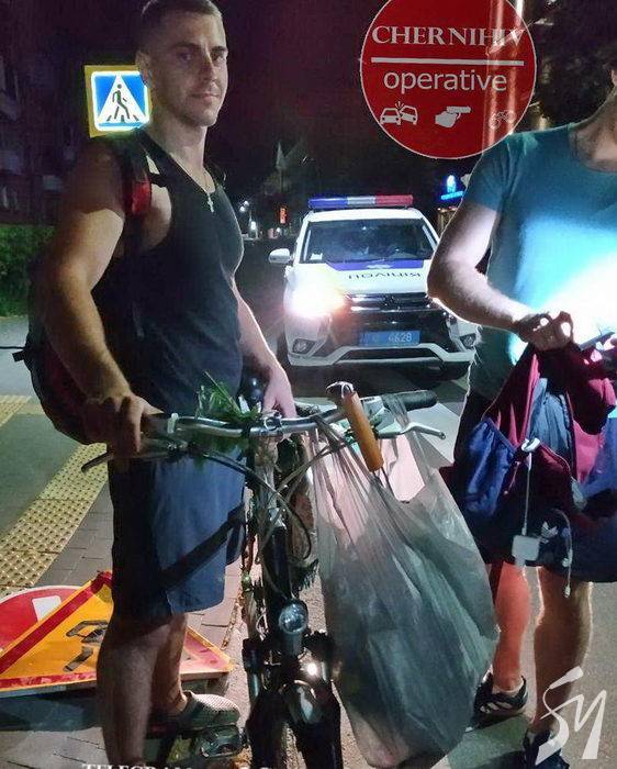 Двоє на велосипедах поцупили дорожні знаки в центрі Чернігова