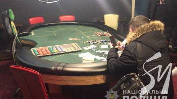 Під час обшуку поліцейські знайшли та вилучили покерний стіл, 800 ігрових фішок, колоди карт та документацію, яка підтверджує незаконну діяльність закладу.