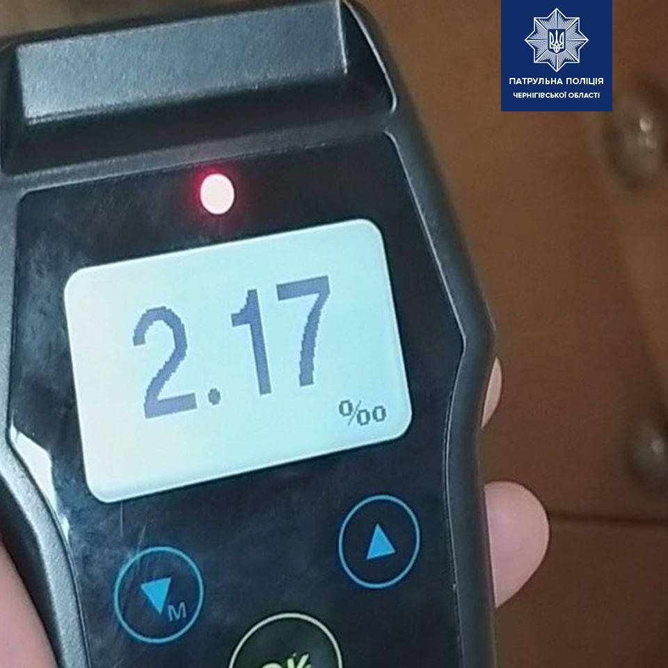Під час спілкування охоронці порядку помітили у водія явні ознаки алкогольного сп’яніння та запропонували йому пройти огляд. 34-річний кермувальник від огляду не відмовився. Результат позитивний — 2.17 проміле, що майже в 11 разів перевищує допустиму норму.