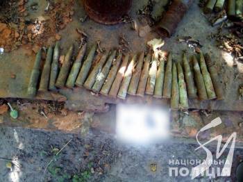 В результаті правоохоронці виявили та вилучили у чоловіка ствол від гвинтівки Мосіна, три десятки набоїв калібру 7.62мм, багнет, артилерійський снаряд калібру та ручну осколкову гранату Ф-1. Все зі слідами корозії, зібране на місцях боїв Другої світової війни.