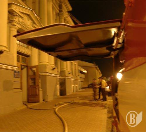 Пожарники утверждают, что сигнал на пульт им поступил в 22. 22. Посменно на чердаке горсовета работали 2 смены огнеборцев. Хотя по словам специалиста по связам с общественностью и СМИ, который прибыл на место события почти одновременно с представителем «Высокого Вала», пожарники ликвидировали «задымление – там тлели балки крыши - на участке 5 квадратных метров». «Работали в условиях абсолютной невидимости и будут периодически отрабатывать до утра».