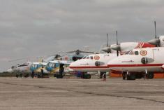 Противопожарный авиаотряд МЧС состоит из 4 самолетов АН-32П и двух вертолетов МИ-8МТ.