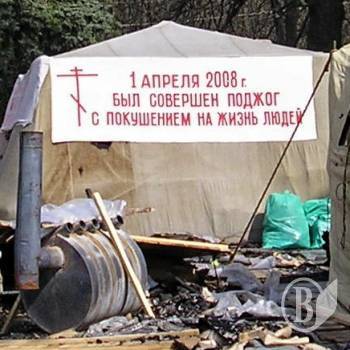 3 ноября приблизительно в 20:20 в"производной церкви"– палатке под храмом св.Екатерины в Чернигове охрана церкви увидела сильное задымление окружающей территории.