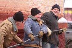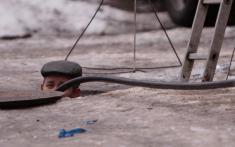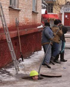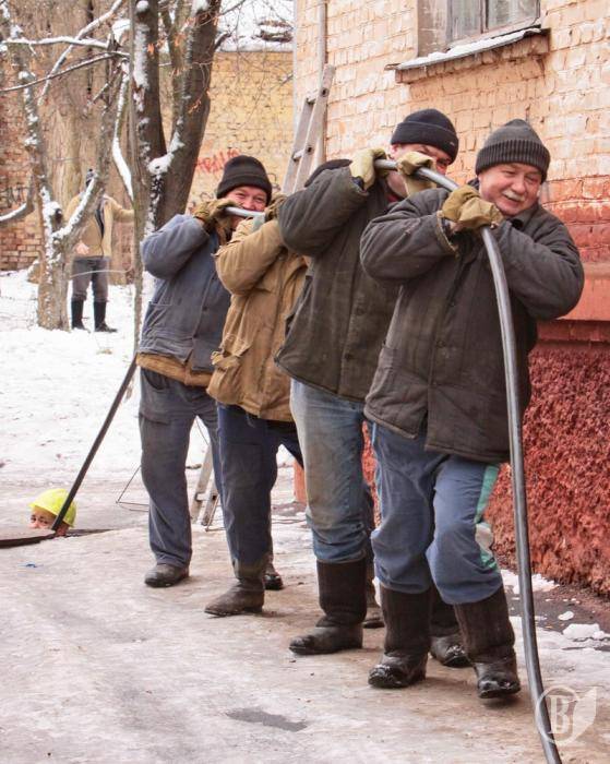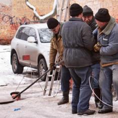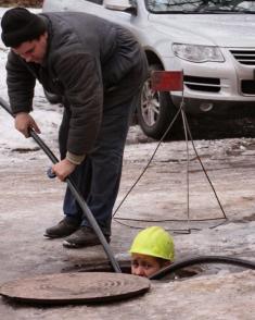 Сьогодні на одній з вулиць Чернігова відбувалося дивне дійство: один чоловік провалився у яму по саму шию, а четверо витягували його.