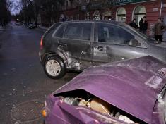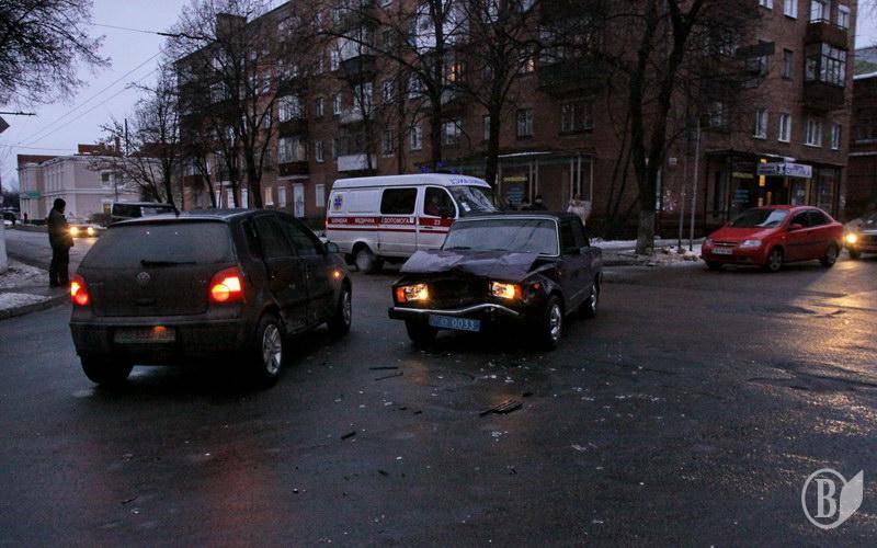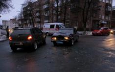 Столкновение двух легковых автомобилей случилось в Чернигове на перекрёстке ул.Горького и ул.гетмана Полуботка. Не разминулись милицейский ВАЗ-2107 и Volkswagen Polo.