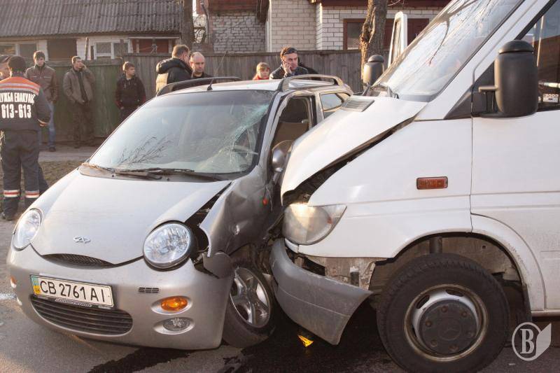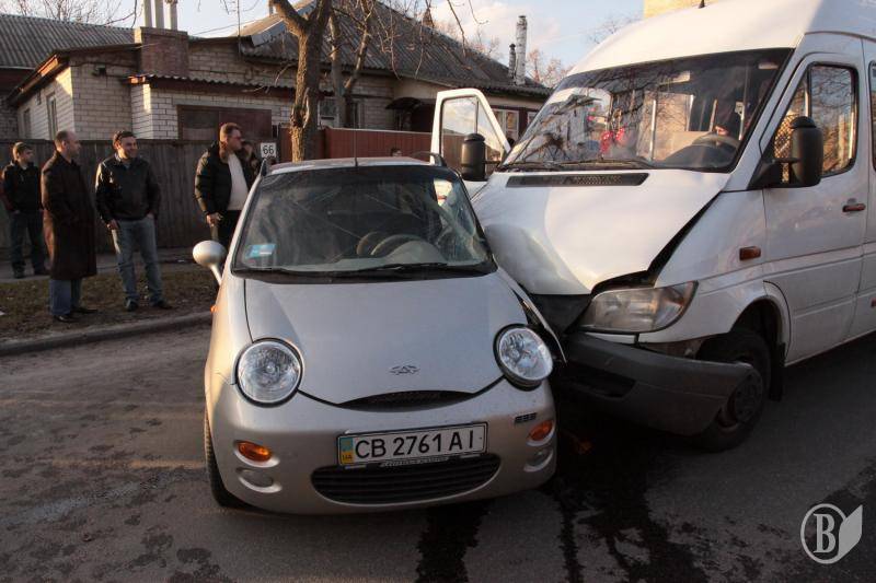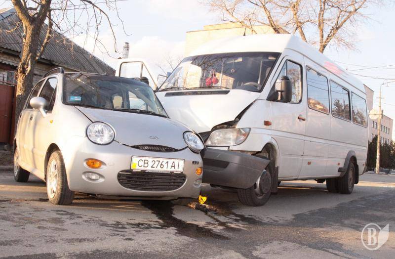 В Чернигове на углу улиц Молодчего и Гетмана Полуботка около 17-и часов произошло столкновение микроавтобуса «Мерседес» с легковым автомобилем «Cherry», в результате которого водитель легковика (женщина) доставлен в больницу.