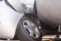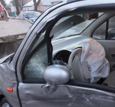 У автомобиля повреждено лобовое стекло, вырвано переднее левое колесо.