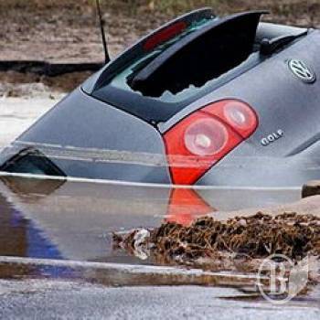 Впоследствии такая же ситуация повторилась неподалеку от Индустриального моста по ул. Борщаговский. Тогда машина просто исчезла под водой.