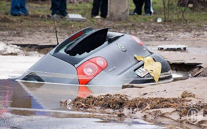 Впоследствии такая же ситуация повторилась неподалеку от Индустриального моста по ул. Борщаговский. Тогда машина просто исчезла под водой.
