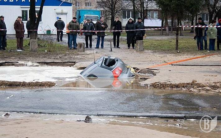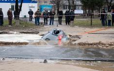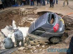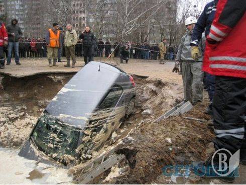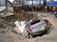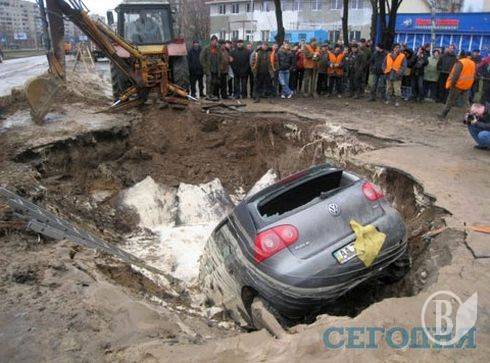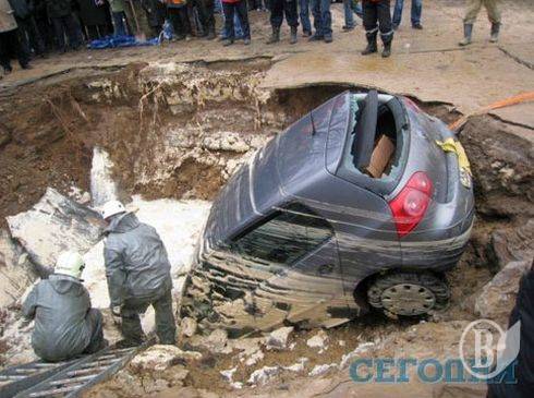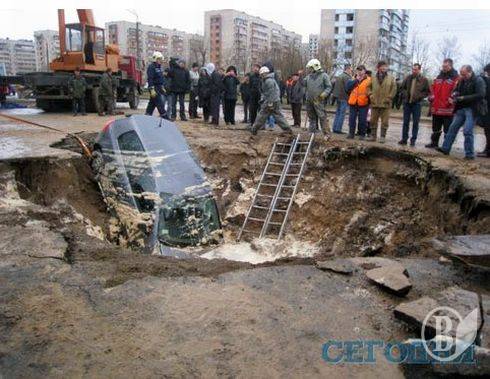 В Соломянском районе на асфальте провалилась маршрутка. А совсем недавно провалился асфальт по ул.Гетмана, правда, тогда обошлось без "жертв".