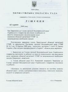 "Просим вмешаться в состояние дел в Черниговской областной организации УООР и осуществить в пределах своей компетенции мероприятия по улучшению работы", - подытоживает обращение депутатов областного совета.