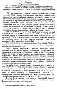 Виходячи з вищевикладеного, просимо Вас, убезпечити Чернігівську обласну організацію УТМР та її керівництво від будь-яких незаконних зазіхань, в тому числі на звільнення з метою призначення виконуючих обов’язків, які б дослухалися до тих, хто їх призначив, а не до членів обласної організації УТМР.