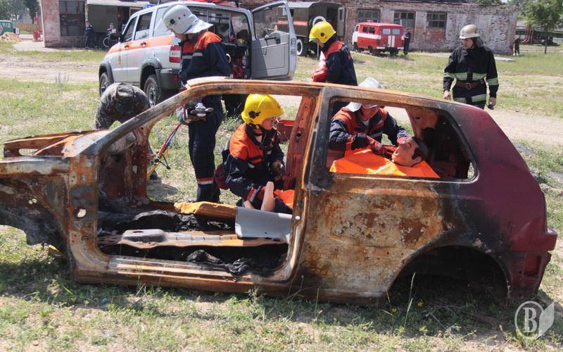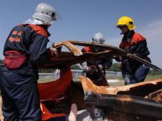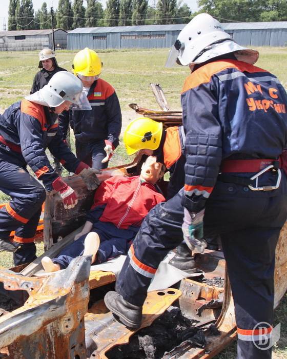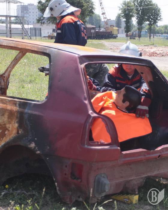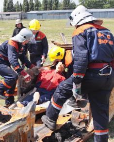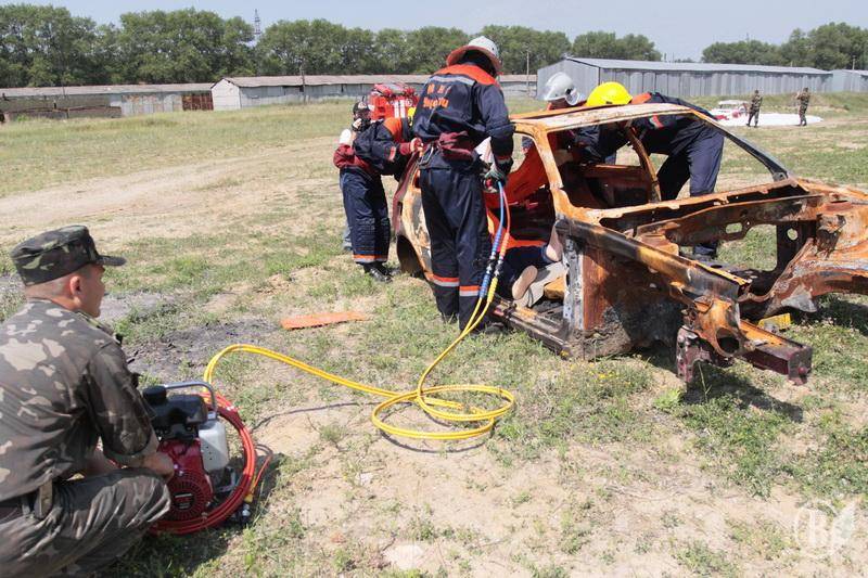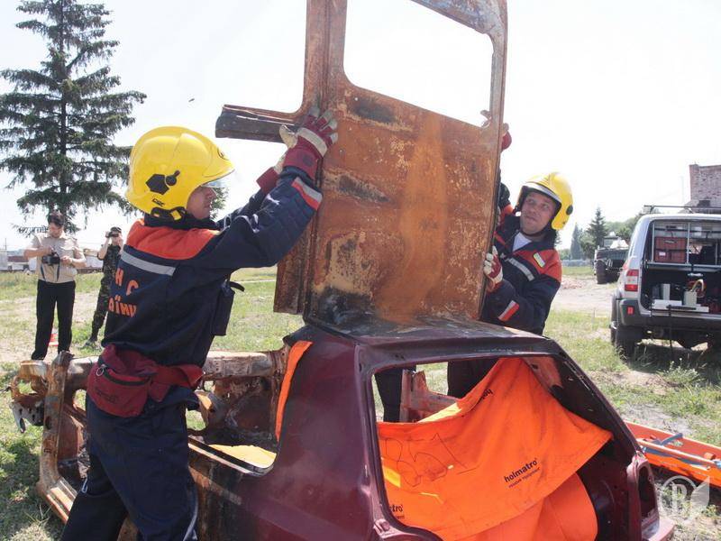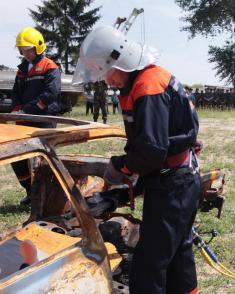 У рамках навчать територіальної оборони у Чернігові рятувальники визволили умовного постраждалого, затисненого в легковому автомобілі.