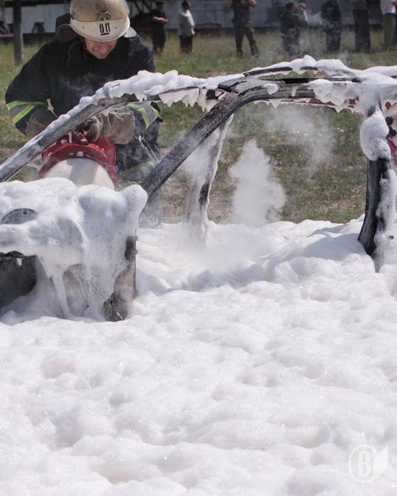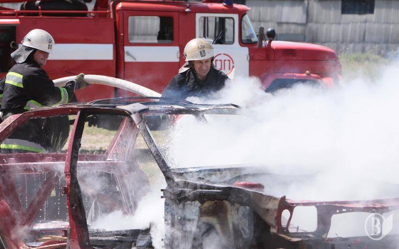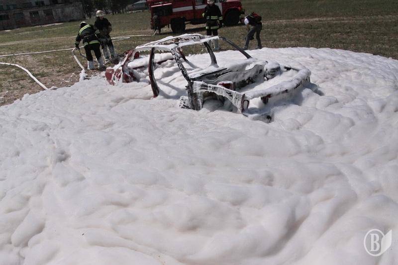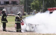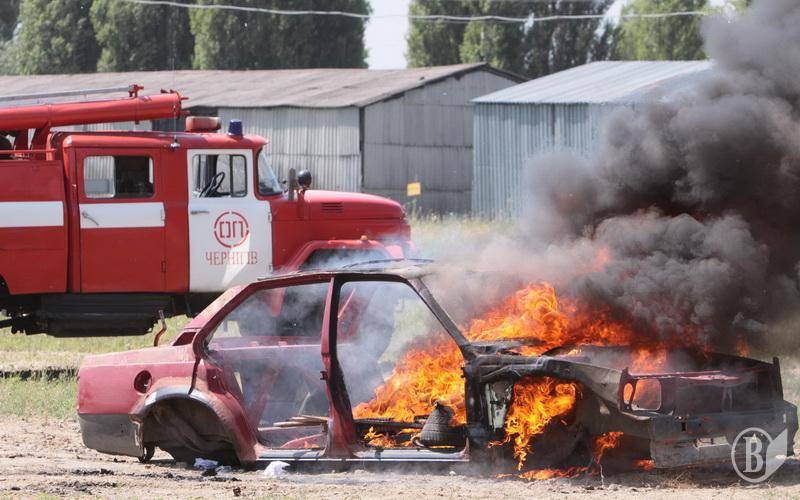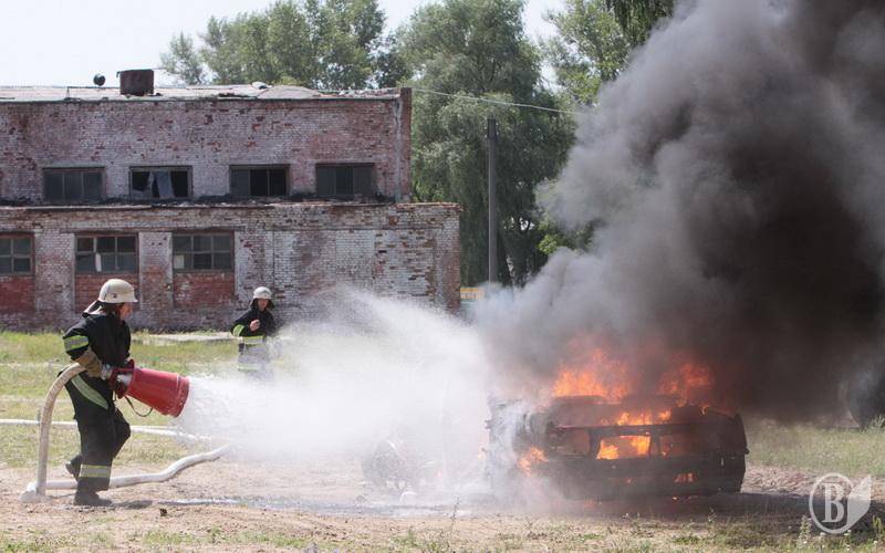 У рамках навчать територіальної оборони у Чернігові пожежники успішно загасили так же успішно розпалений автомобіль. Точніше – кузов легкового авто.