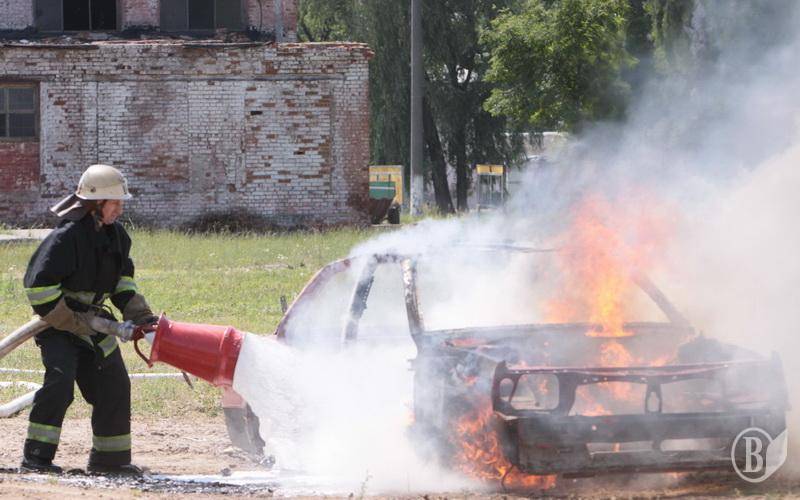 Гасіння палаючого автомобіля. ФОТОрепортаж