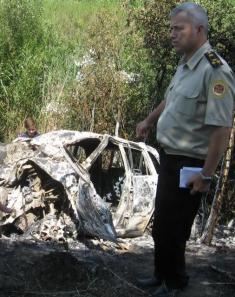 Лише біля 7-ї години на дорозі випадково помітили шматок якоїсь пластикової деталі. Коли зупинилися і зайшли за дерево, яке рясно обросло кущами, то побачили страшну картину - обгорілий джип, навколо якого лежали понівечені тіла людей.