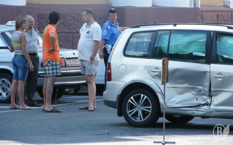 ДТП за участю новеньких автомобілів ВАЗ і Volkswagen сталось у Чернігові на сумнозвісному перехресті проспекту Миру і вулиці Преображенської.