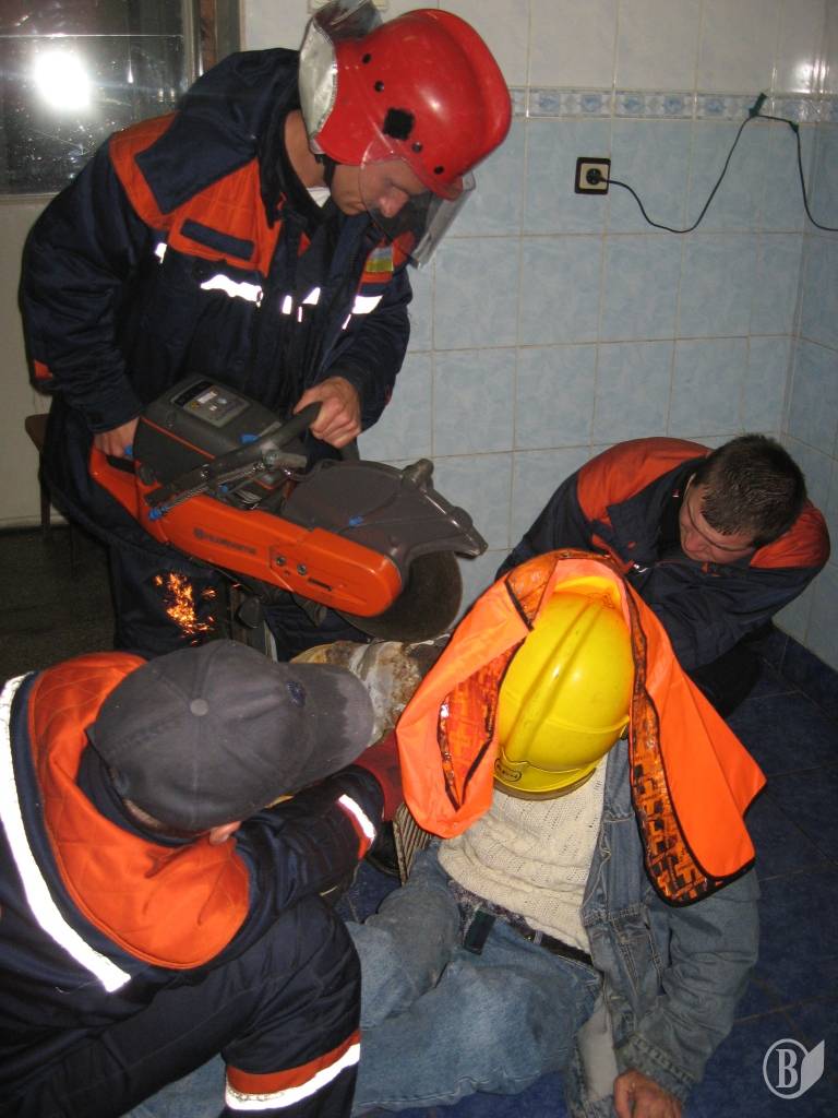 Были использованы гидравлические ножницы и бензорез. Однако действовать необходимо было крайне осторожно с точностью до миллиметра, чтобы не зацепить человеку руку.
