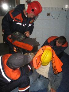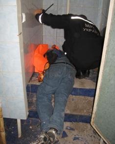 Проведение спасательных работ усложняли малое пространство в кабинке санузла и то, что чугунный унитаз был забетонирован и обложен кафельной плиткой.