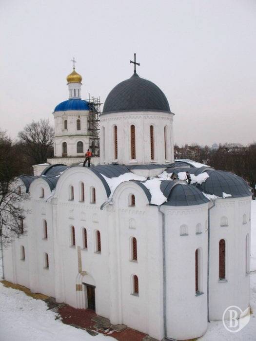 Работникам Национального архитектурно-исторического заповедника"Чернигов древний” приходится ежедневно отбрасывать снег от памяток архитектуры, чтобы уберечь сооружения от влажности. Но для того, чтобы убрать снег на крышах древних соборов нужны специалисты-альпинисты.