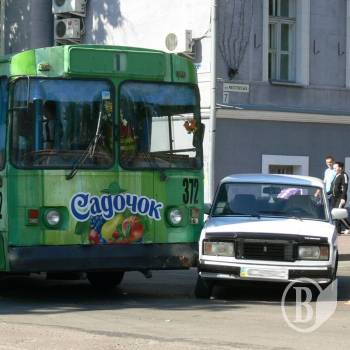 Сегодня около 16.00 на пересечении улиц Магистратская и Кирпоноса в Чернигове случилось столкновение троллейбуса маршрута №1 с автомобилем"Жигули".