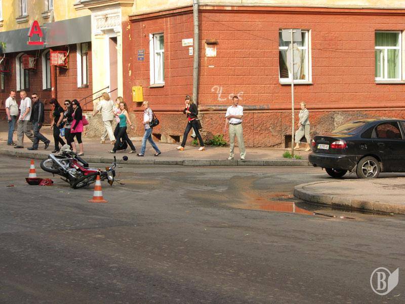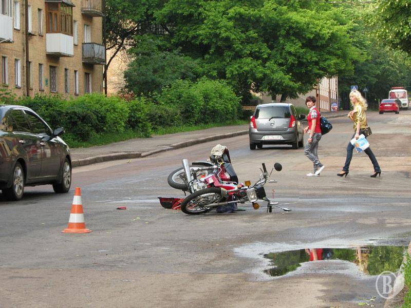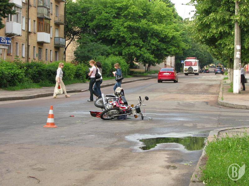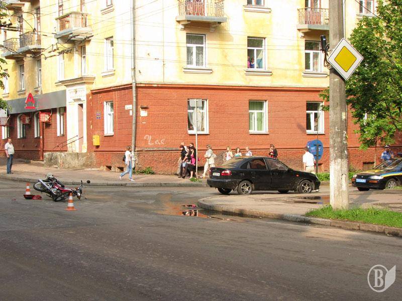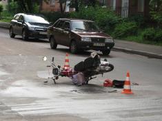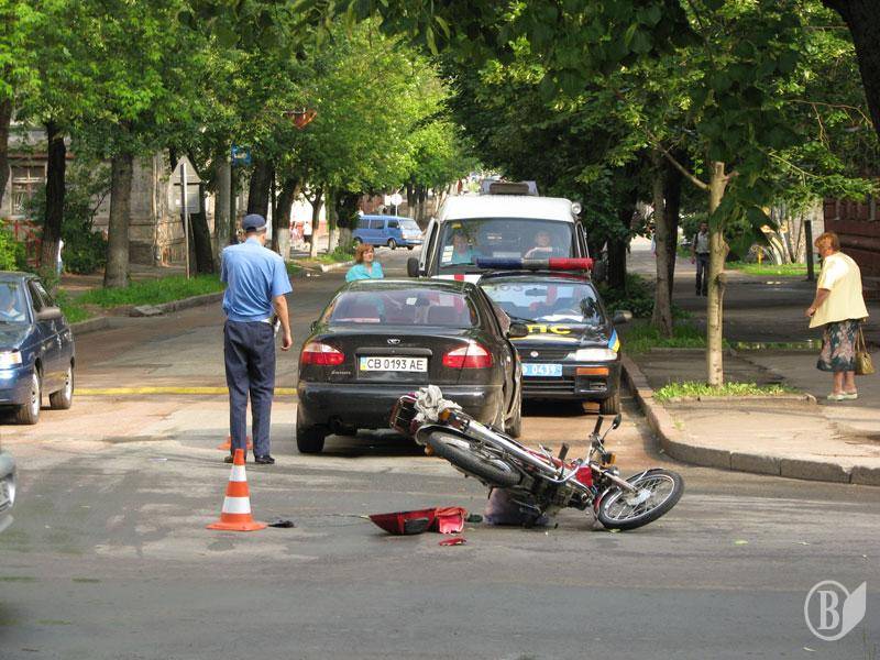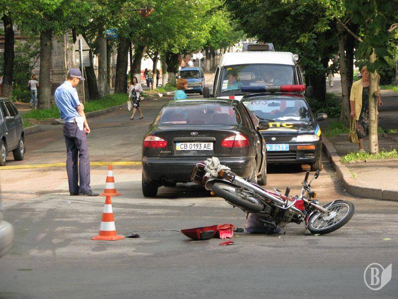 Утром в Чернигове на перекрестке улиц Гетмана Полуботка и Горького случилось очередное ДТП - столкновение автомобиля Daewoo с мопедом.