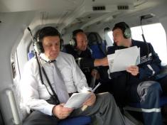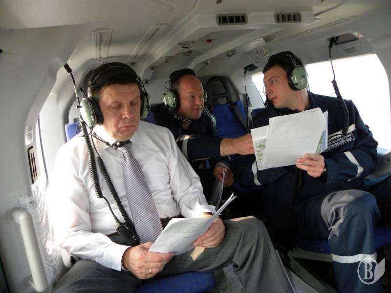 Губернатор Черниговской области Владимир Хоменко, его первый заместитель Станислав Прокопенко и начальник главного облуправления МЧС Владимир Муха провели облет территории региона на борту еврокоптера спецавиаотряда МЧС Украины.