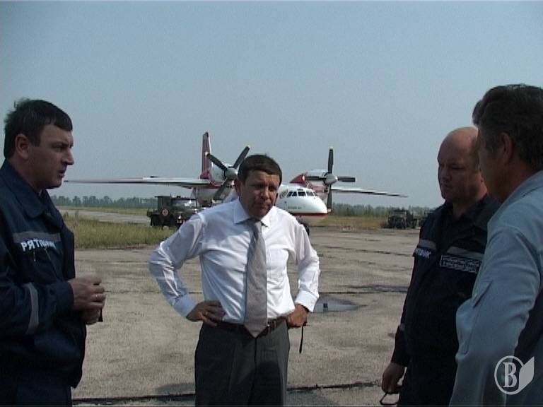 Уже после посадки на аэродроме спецавиаотряда МЧС для заправки еврокоптера, глава облгосадминистрации пообщался с руководством отряда и членами экипажа одного из двух пожарных самолетов АН-32П, которые осуществляют гашение этого пожара. Отметим, что на сегодняшний день, кроме пожарно-спасательных подразделов, задействована и авиация МЧС. В 22 случаях работали самолеты АН-32П и в 15 - вертолёт МИ-8. В ходе этого проведено 55 сливов воды общим объемом почти 250 кубических метров. Вопрос ликвидации пожаров торфяников, в том числе и около села Кукшин, в тот же день рассмотрен на совещании у главы облгосадминистрации.
