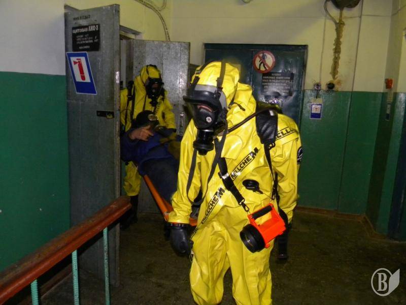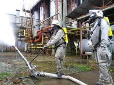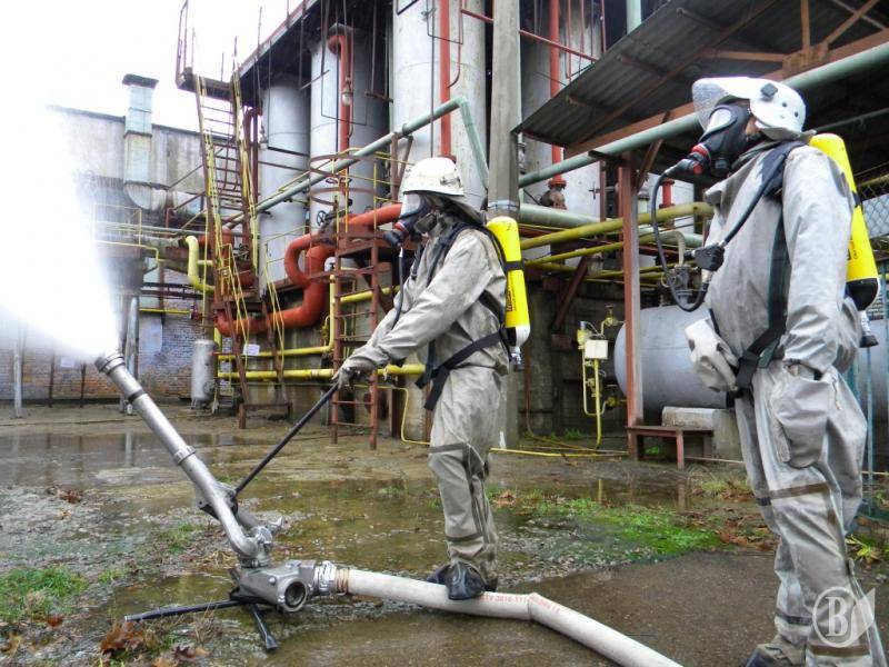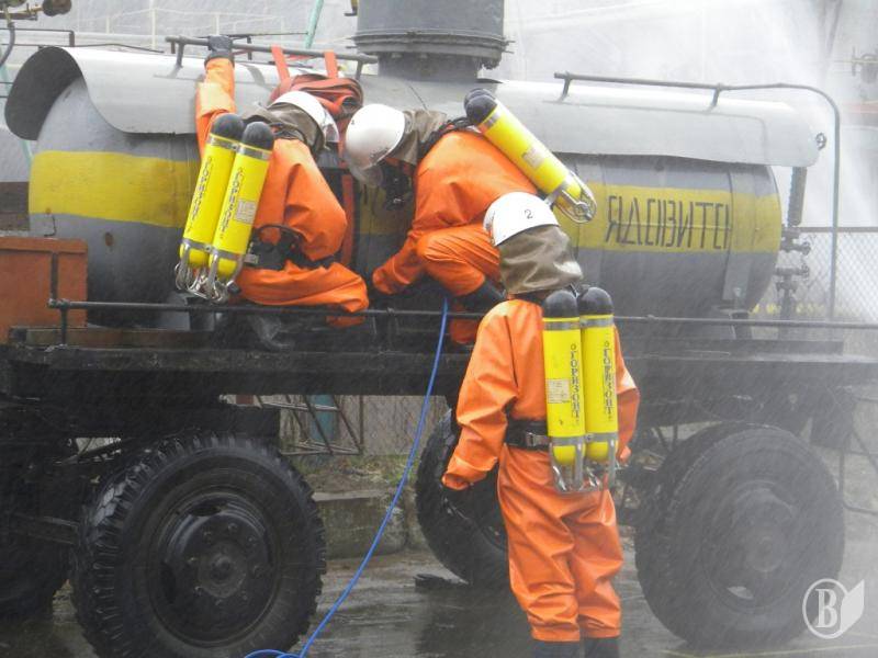 Після цього, на базі 8-го навчального центру Державної спеціалізованої служби транспорту та ВАТ "Хімволокно" були проведені практичні відпрацювання дій сил органів виконавчої влади та суб’єктів реагування. Для цього залучалося понад 140 співробітників підрозділів МНС, 8-го навчального центру Державної спеціалізованої служби транспорту, міліції, охорони здоров’я, газорятувальний взвод ВАТ "Хімволокно" та інші служби.