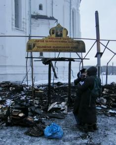 За словами жителів походного храму, що були присутні зранку на згарищі, було скоєно підпал. Намет загорівся зовні за півгодини до півночі у новорічну ніч - ніч на 1 січня 2011 року.