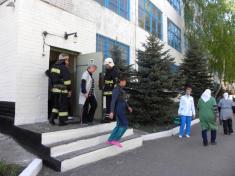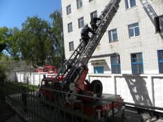 Одну людину, яка опинилась у пастці на третьому поверсі, рятували по автодрабині. За 15 хвилин умовну пожежу було ліквідовано.