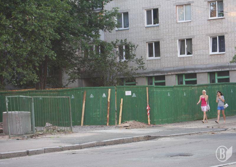 За його словами нещодавно будівельники обнесли парканом територію у дворі прилеглих будинків( див на фото), а сьогодні зранку екскаватор почав тут рити котлован.